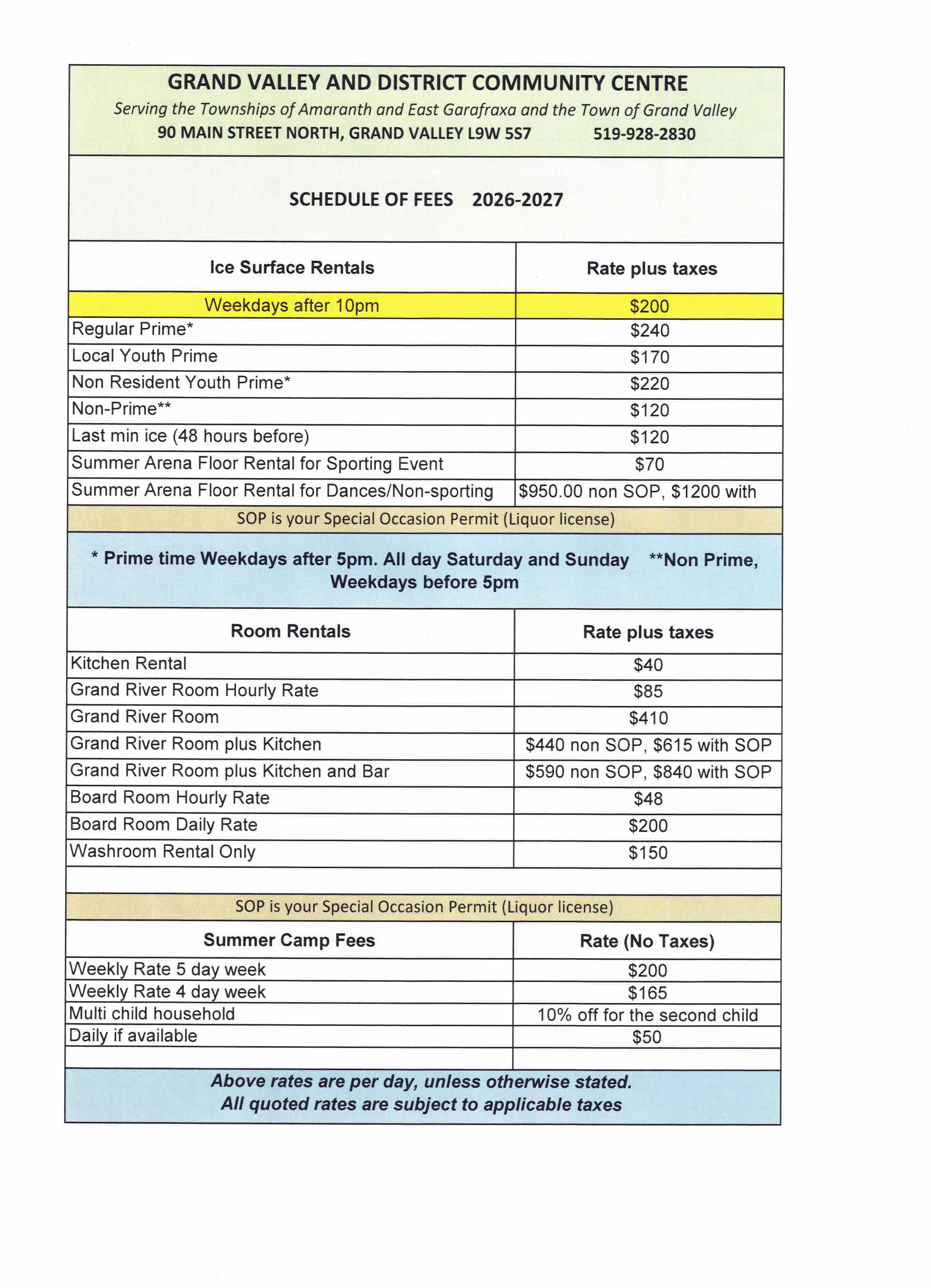 E-mail for bookings or rentals: booking@townofgrandvalley.ca